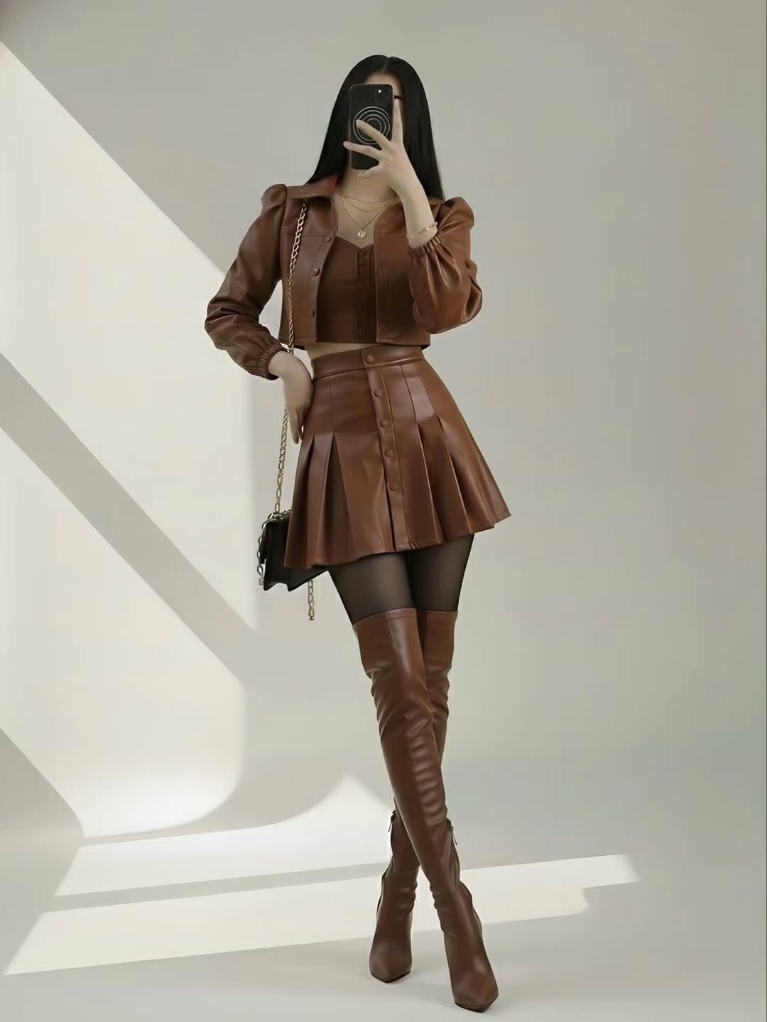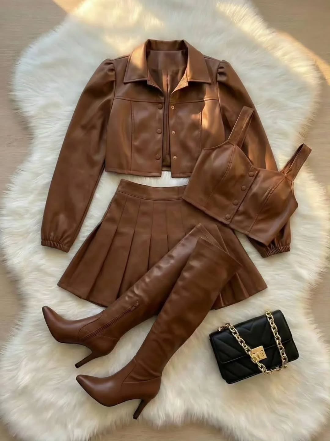 ۳ تیکه کت و دامن و کراپ‌🪡جنس : چرم