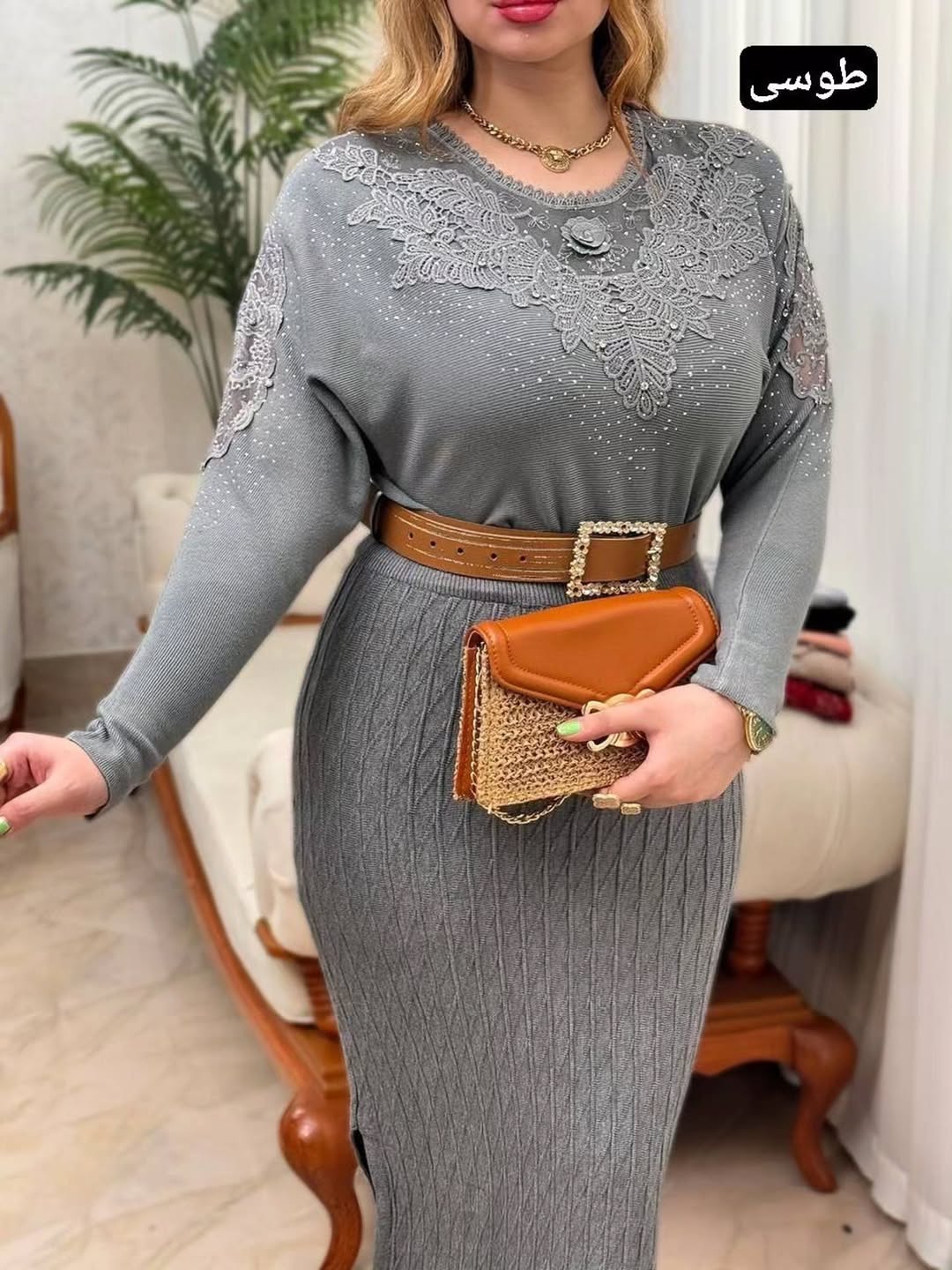 بافت وارداتی بسیار با کیفیت خرجکار گیپور و سنگ دوزی🌹قد کار حدود ۶۵ سانت