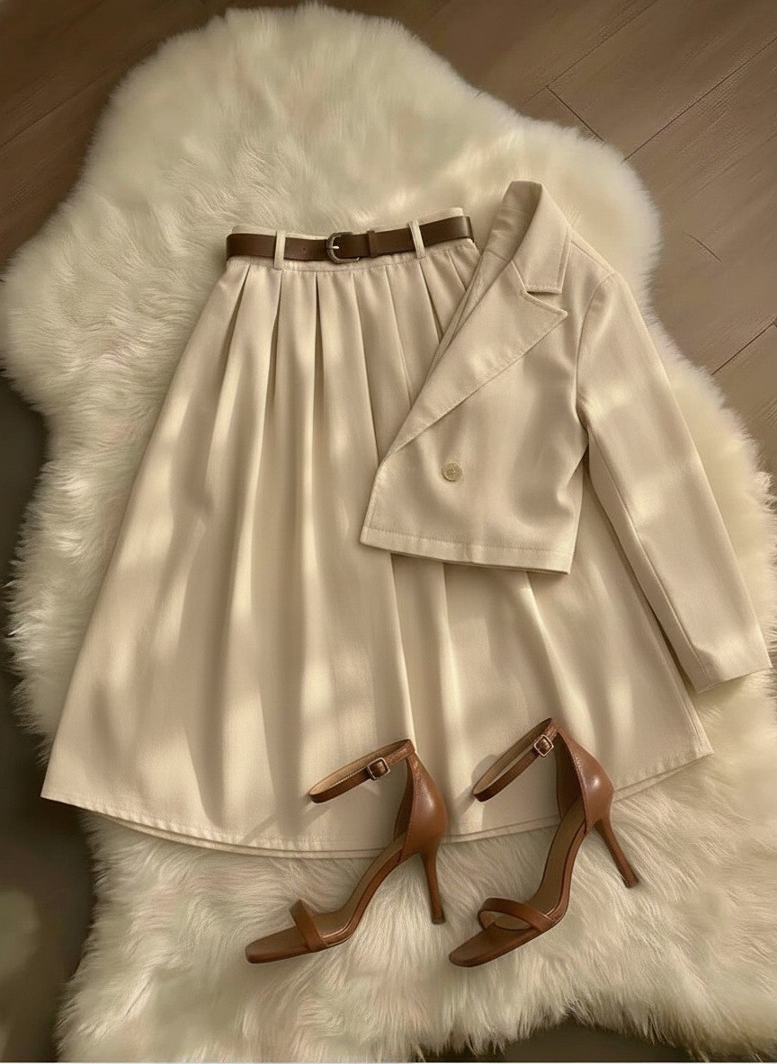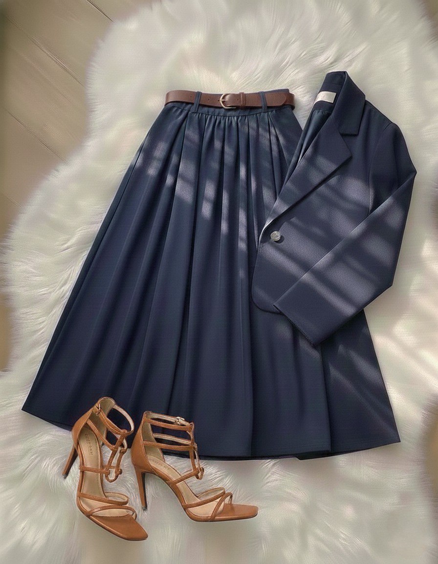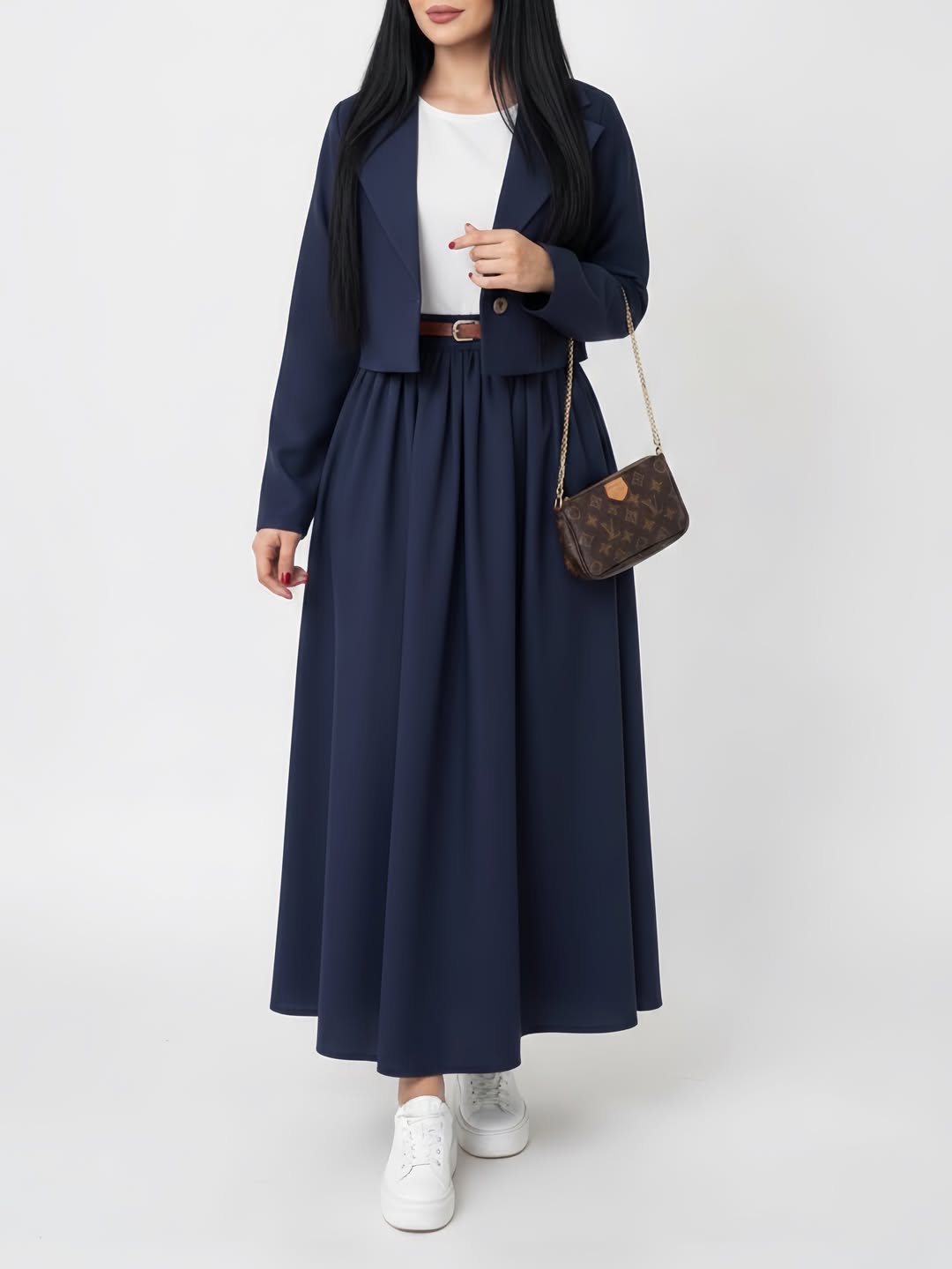 ست کت و دامن نیلای + کمربندپارچه کتان پلاسقد کت حدودا ۵۵