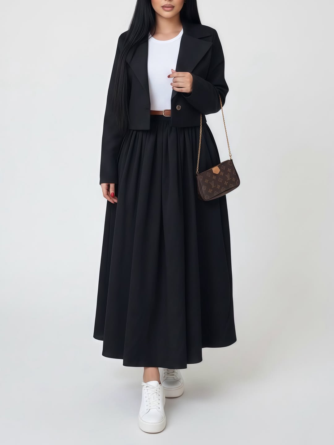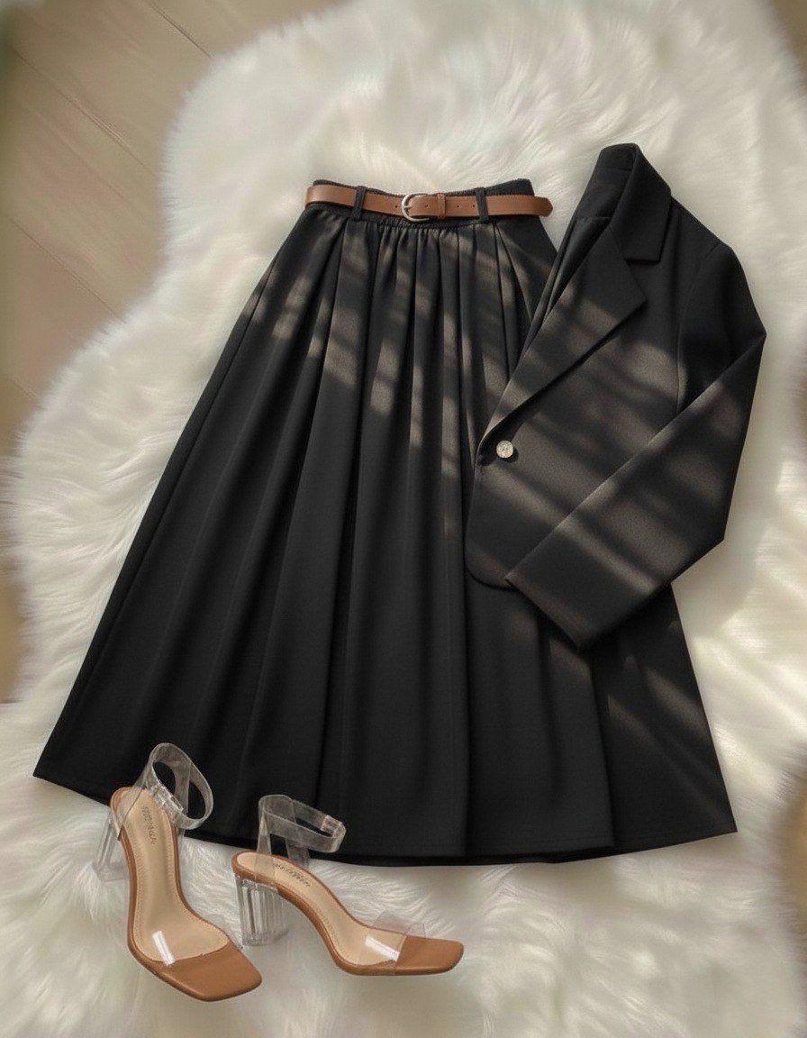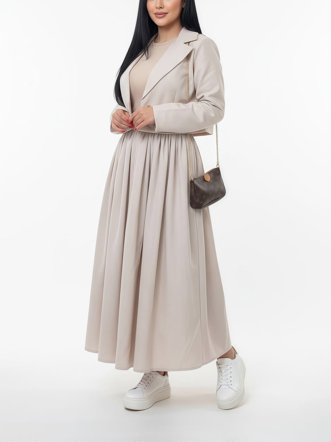 ست کت و دامن نیلای + کمربندپارچه کتان پلاسقد کت حدودا ۵۵