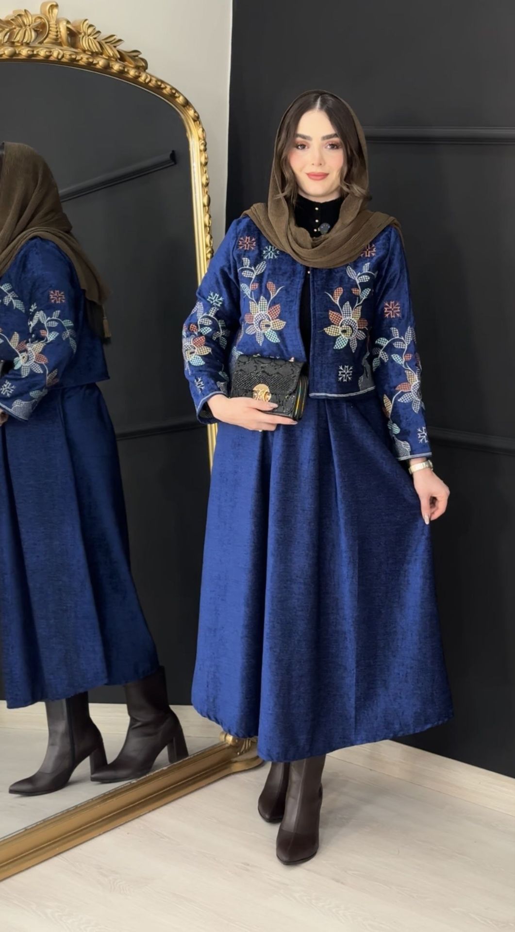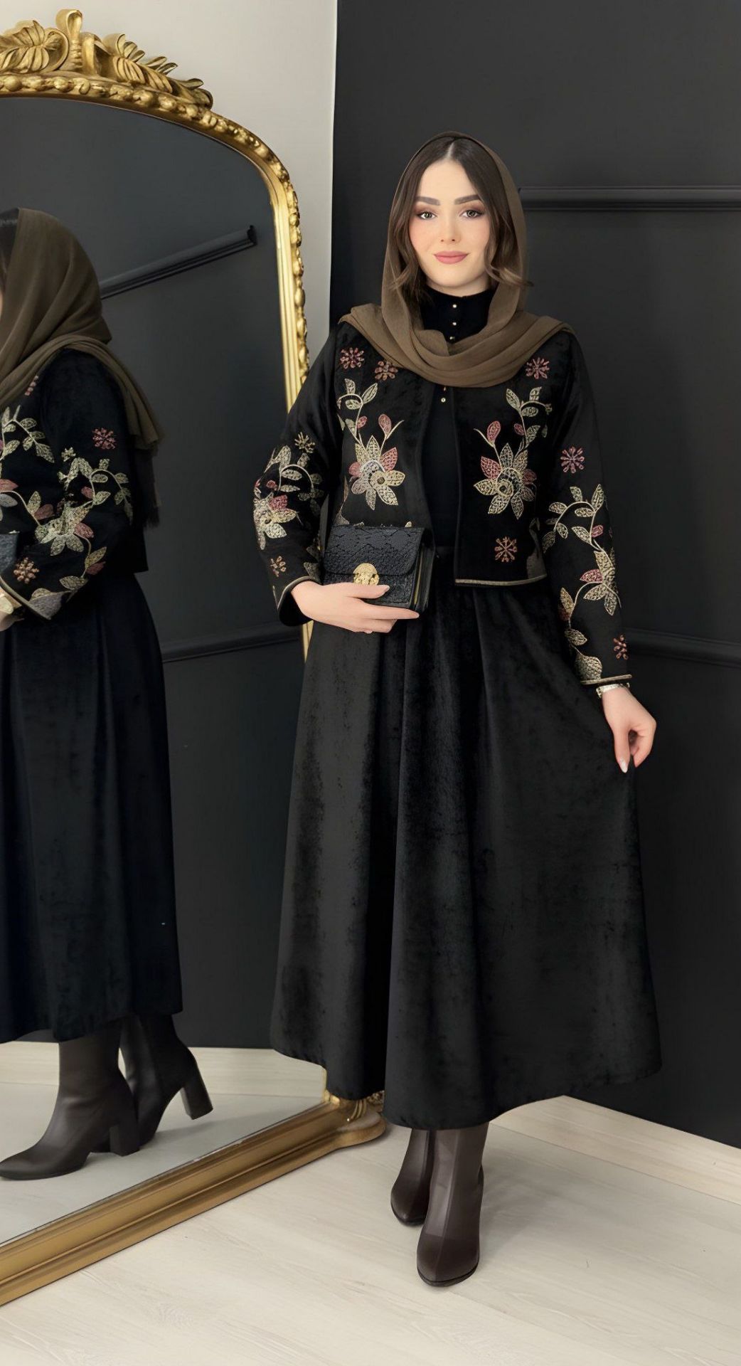 کت و دامن گلدوزی جنس مخمل گلدوزی