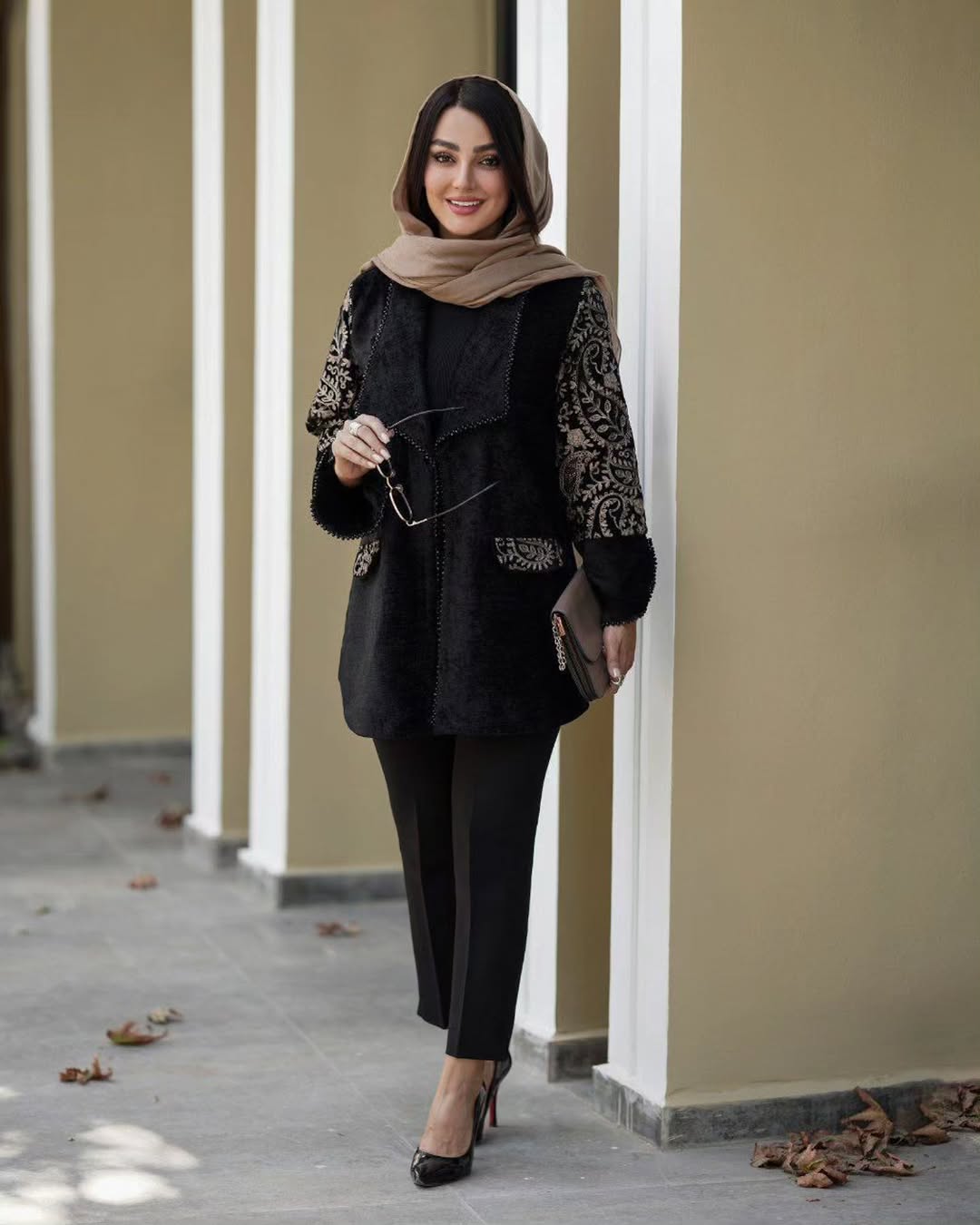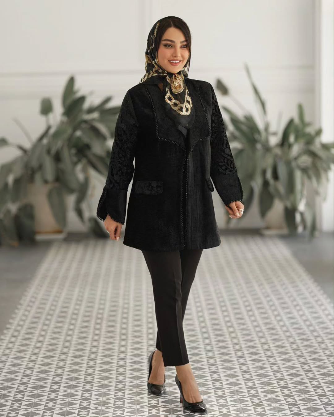 🌿جنس : مخمل شانل جت بلک +خرجکار هندی پیش 🌿کار لایی پرشین خورده